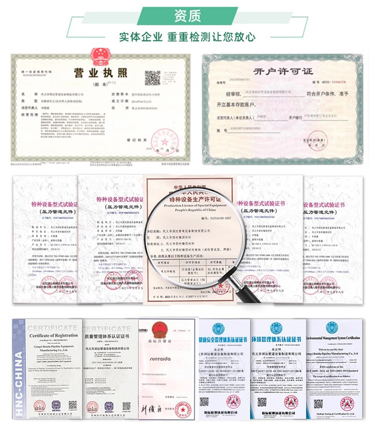 公司通過德國萊茵公司工廠實地認證,真實廠家,行業十幾年生產經驗,多年工藝與品質積累,只為給您提供高品質的管道產品。公司設有嚴格的質量控制體系,標準的生產工藝流程,規范的出廠檢測手段,確保出廠的每一件產品達到國家標準和客戶的要求。